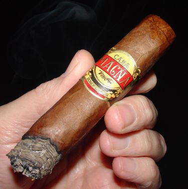 My first impression was that this is a much smoother cigar than the Casa Magna Colorado. The smoke texture is mild to medium, but the flavors are quite complex, especially on the nose. Woody aromas predominate — cedary spice and softer notes of sandalwood, while the palate flavor is understated, at least for the first half of the cigar.
