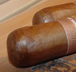 The Clasico Rothschild has the sleek and smooth look that Connecticut wrapper imparts, but the color is a darker golden brown than what is usually found on shade wrapper. The head of the cigar is nicely formed and topped with a classic Cuban-style cap that shears away cleanly. The roll has a little give to it, but the draw is perfect and it burns evenly to the band. The only issue I had was the delicacy of the wrapper, which apparently does not agree with the dry desert heat. There was a small amount of cracking which I fully attribute to atmospheric conditions and not the design of the cigar.