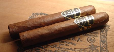 The Habano is the more complex of the two — the aroma is sweet and spicy, assertive like a good perfume, but not overwhelming. The cedar gradually fades into the background as an earthy note takes over, accented by mint. The finish is lengthy and the aftertaste spicy.
