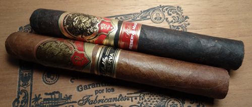 The Habano Reserva focuses on cedar and cocoa, while the Maduro tastes a little richer — think pine rather than cedar, combined with the dark chocolate flavors typical of San Andres maduro. A tannic dryness is apparent in both, a slight astringency that wanes as the cigar burns.